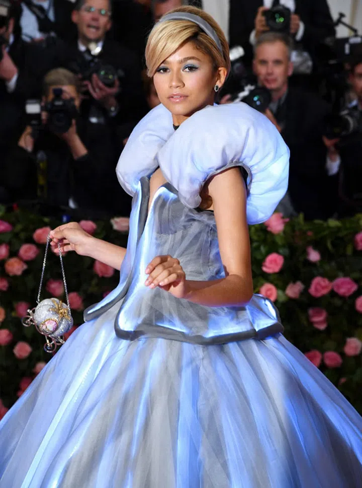 Leave it to fashion darling Zendaya and her longtime collaborator, image architect Law Roach, to work their magic with a high fashion moment. In 2019, the Challengers lead actress brought Cinderella to life in a Tommy Hilfiger gown that lit up in an enchanting glow with the wave of a wand. And her choice of accessory on the evening? A minaudière shaped like the Disney Princess’ carriage, of course.