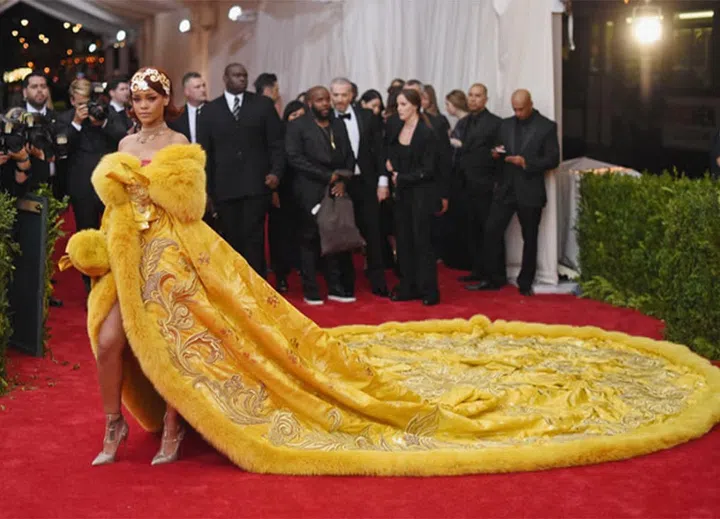 The chart-topping musician, beauty mogul, and national hero of Barbados is not unofficially crowned the “Queen of the Met Gala” without reason. In 2015, Rihanna took to the red carpet donning a larger-than-life gown by couturier Guo Pei, which required an entourage to simply navigate the dress and the star out of a limousine. And just like that, one of the Met Gala’s most memorable moments was born. With all the memes to accompany it too.