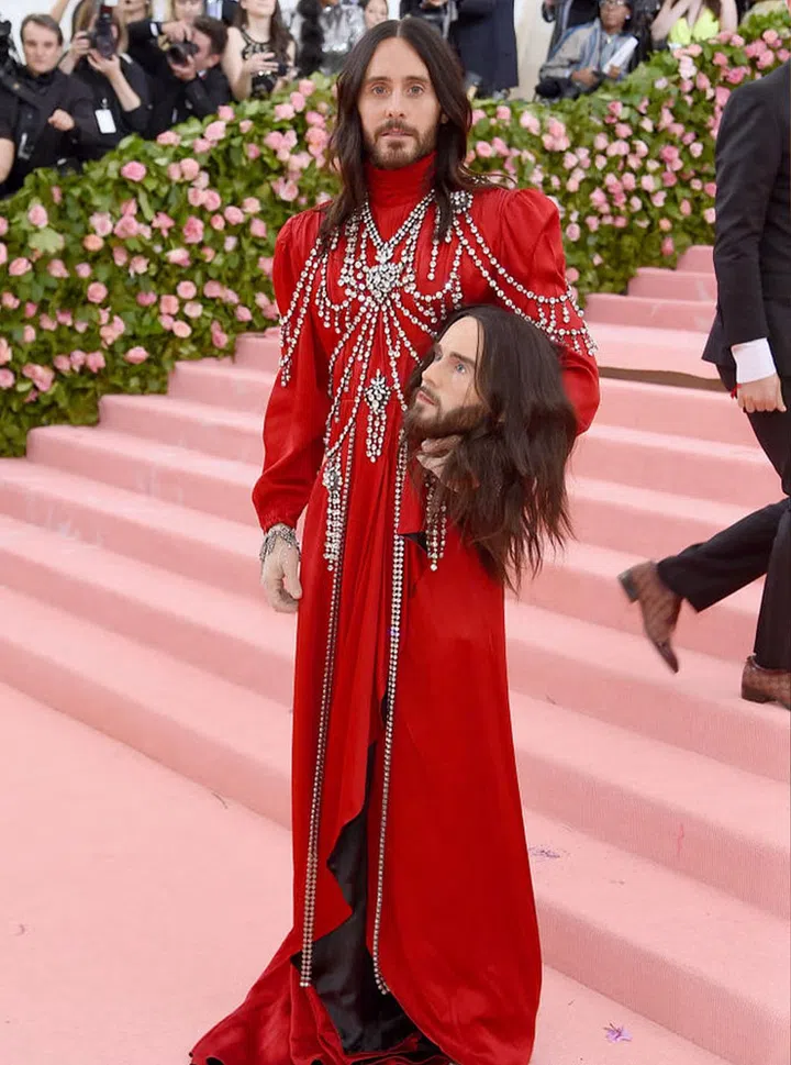 At the 2019 Met Gala, we couldn’t help but wonder: “How’s Jared Leto’s head? Why Jared Leto’s head?” Based on the theme for the year’s ‘Camp: Notes on Fashion’ exhibition, the frontman of 30 Seconds to Mars walked the red carpet in a high-neck gown bedazzled Gucci gown in red while carrying a realistic replica of his own visage on his arms. While the trend of carrying one’s own severed head never quite caught on, the memory of Leto with his definitely did.