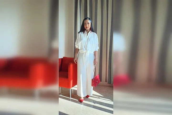 After work, I try to do a small workout at home before settling in to watch TV. I like clothes that are fuss-free, comfortable and cool, but that also lift my spirits. So it's airy maxi dresses or kaftans, palazzo pants, and some loungewear from Uniqlo thrown into the mix.