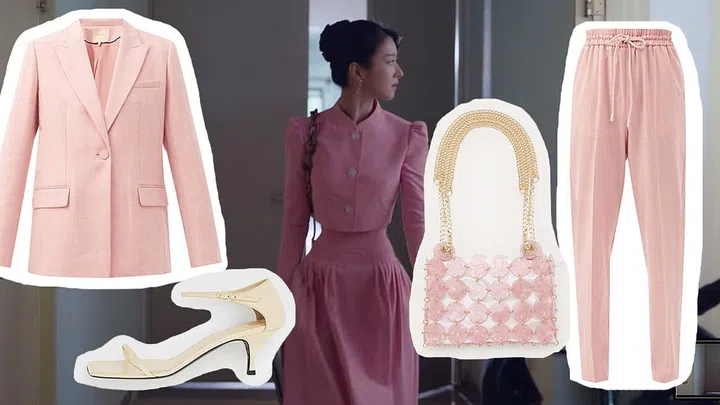 Feminine and classy, matching pink coords are a definite “yes”, as seen on Ye-ji in Episode 6. She wore a cropped jacket with a long skirt and matched it with white and pastel accessories. For a sassier approach, go with a pantsuit instead.