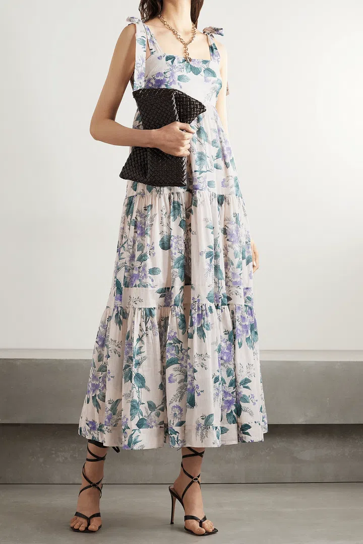 From the chunky metal necklace, structured black denim jacket to the airy pink floral dress and high-cut leather boots, this model-off-duty look that Sheila pulled off here is an ingenious mix of textures. Try combining a ribbed jumper or cardigan with a silk slip dress and finish with chunky dad sneakers, for example.