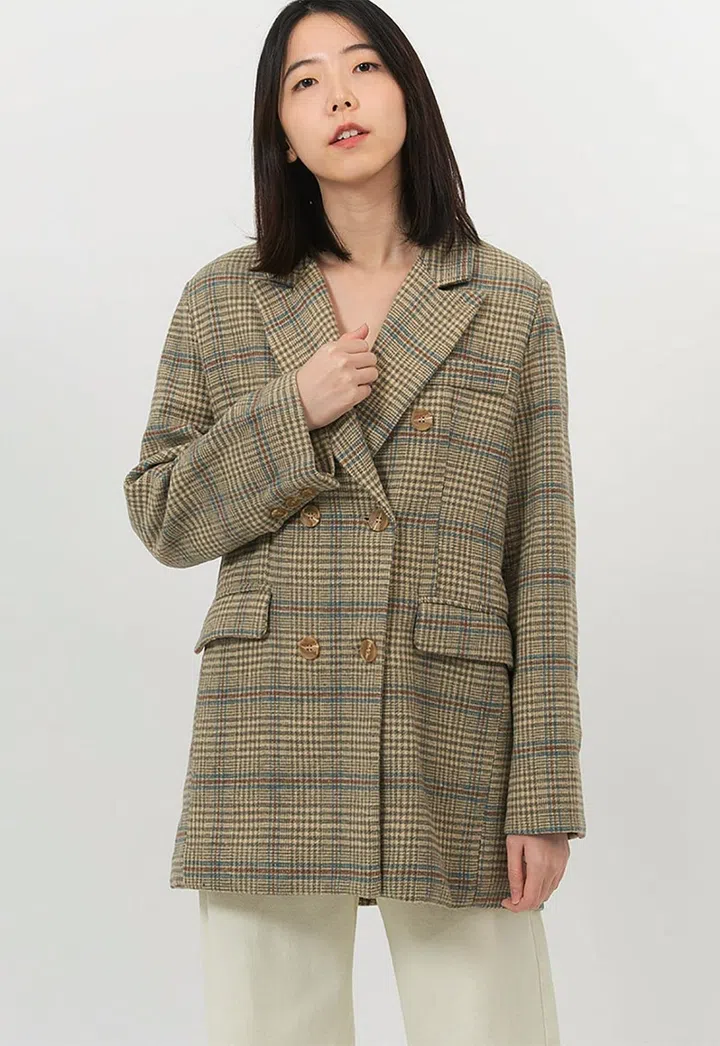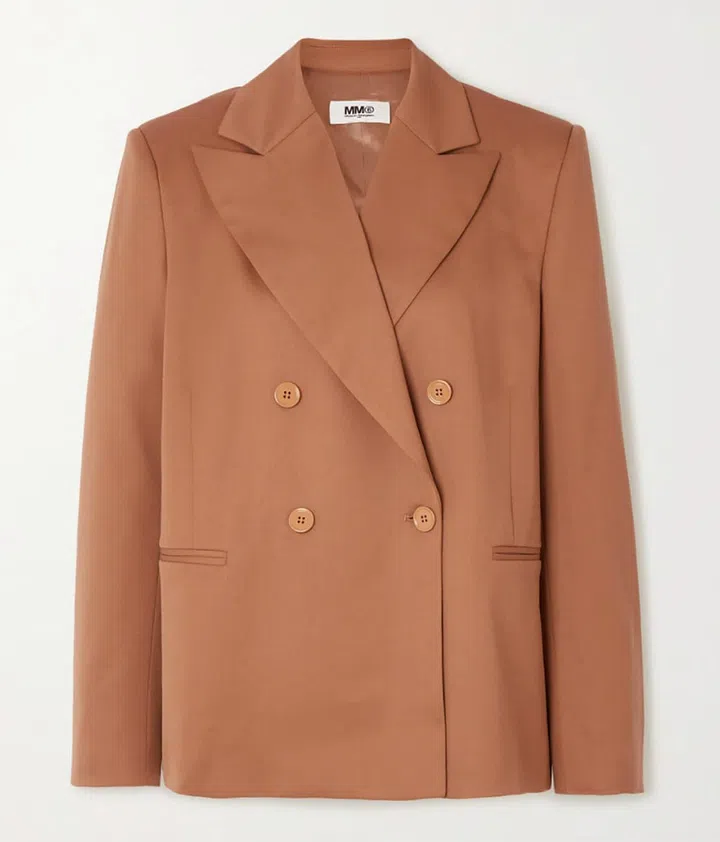 This double-breasted blazer is loose-fitting with strong, emphasised power shoulders and polished tailoring. Seen in a light camel brown hue, this versatile staple will work with anything in your wardrobe with ease. Style it with a pair of gold hoop earrings, an on-trend chunky chain necklace, a simple midi dress and a pair of loafers for the office.