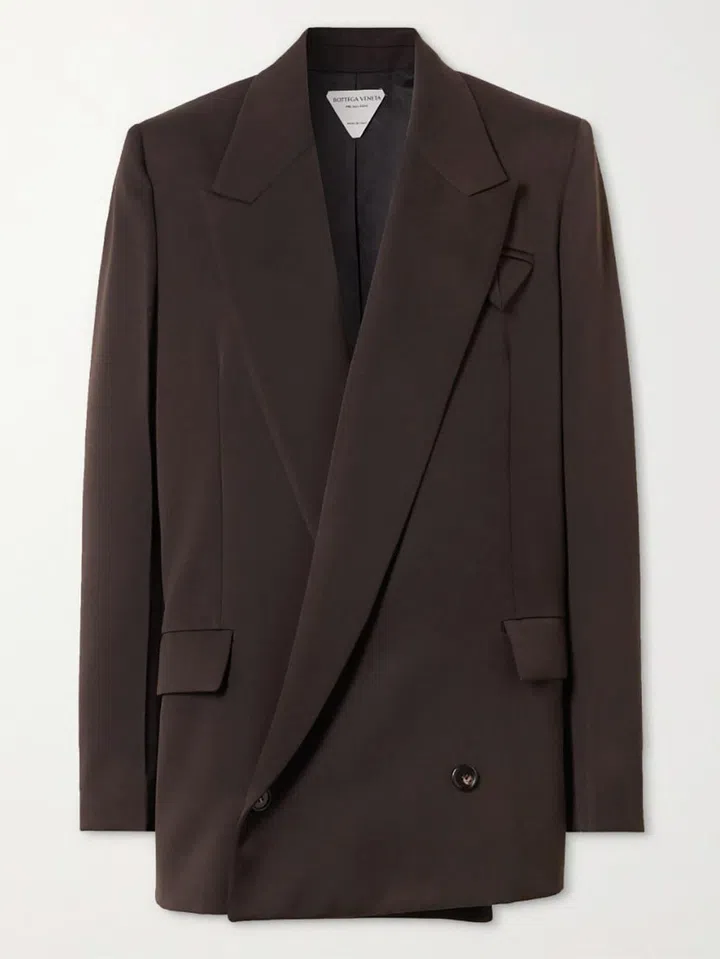 Featuring peak lapels, this lightweight double-breasted blazer is crafted to a roomy, relaxed fit so that you can experiment with layering bulkier separates underneath or complement your everyday workwear with a sophisticated, high-fashion edge. Team it with a silk blouse and your favourite pair of jeans, together with a pair of white sneakers.