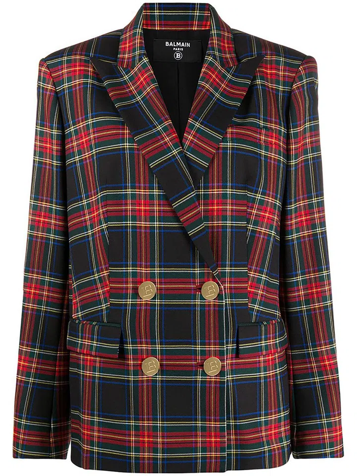You can never go wrong with a plaid jacket. Timeless with cool girl appeal, the ever-stylish plaid jacket is a fall-favourite that goes well with anything from a t-shirt and jeans to a cable knit dress or a leather mini skirt for a little edge. This statement double-breasted piece is rendered in bold brick red, features contrasting black buttons, and is finished with strong structured shoulders.