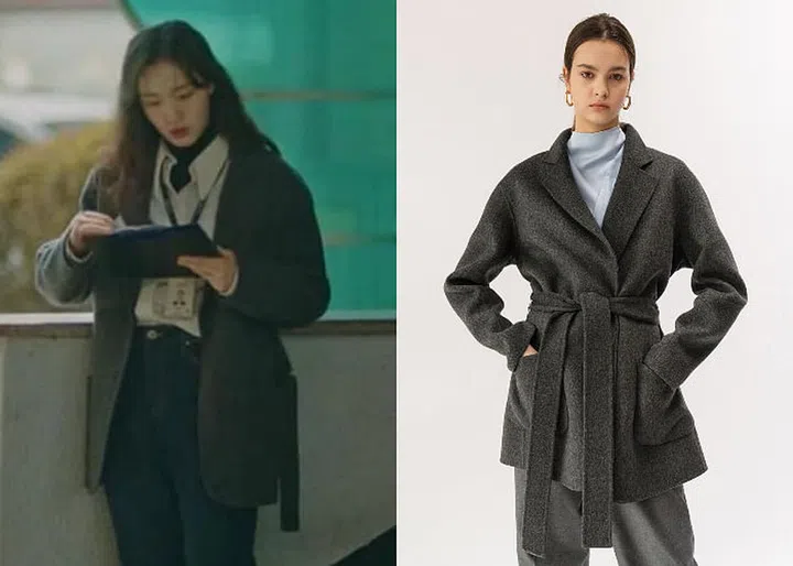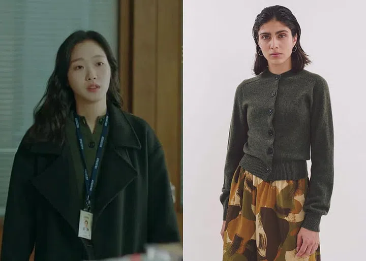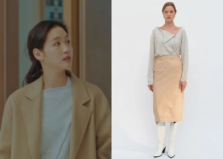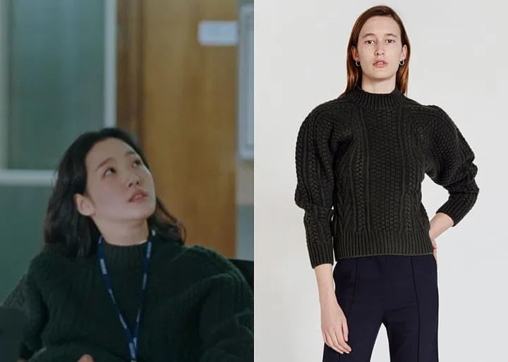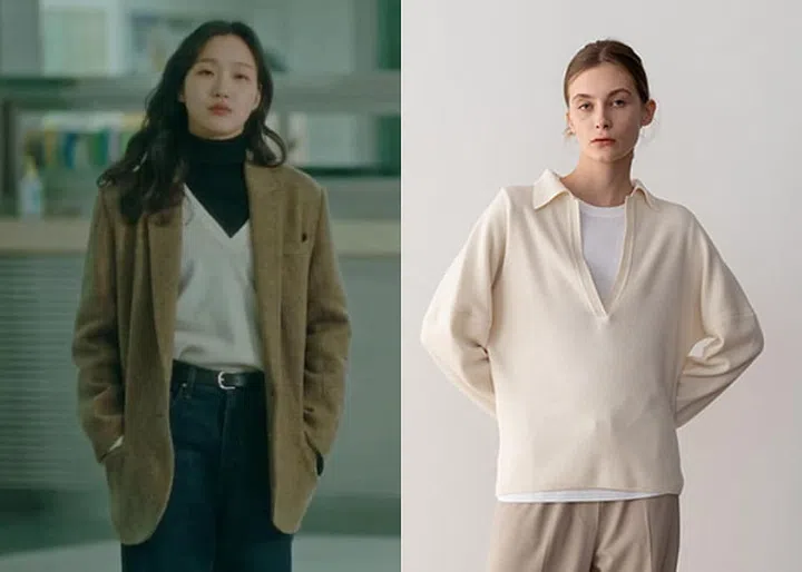 In the same scene, Kim also wore this ivory sweater from Gouache. While they chose to hide the collar, another look you can try is to have the sweater collar lay atop the blazer. This creates a stacked collar effect, similar to what Kim Hye-soo wore in Hyena (which also starred Ju Ji-hoon).