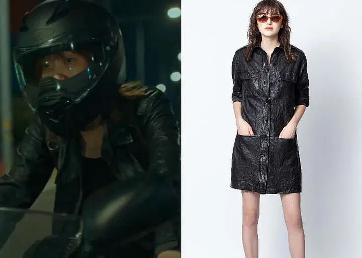 It is easy to mistake the outfit for a leather jacket at first glance, but it is actually a dress made with lambskin. The choice is perfect too, as it reflects the edgy Luna (the alter-ego of Lieutenant Jeong) who grew up on the streets of Corea.