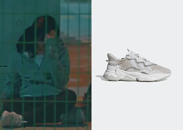 This scene in episode 11 was particularly thrilling as it finally injected thrilling action scenes where we see her exercising at home before waking up in an unknown place. Here, she sports Ozweego shoes from Adidas Originals.