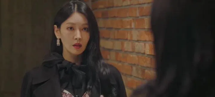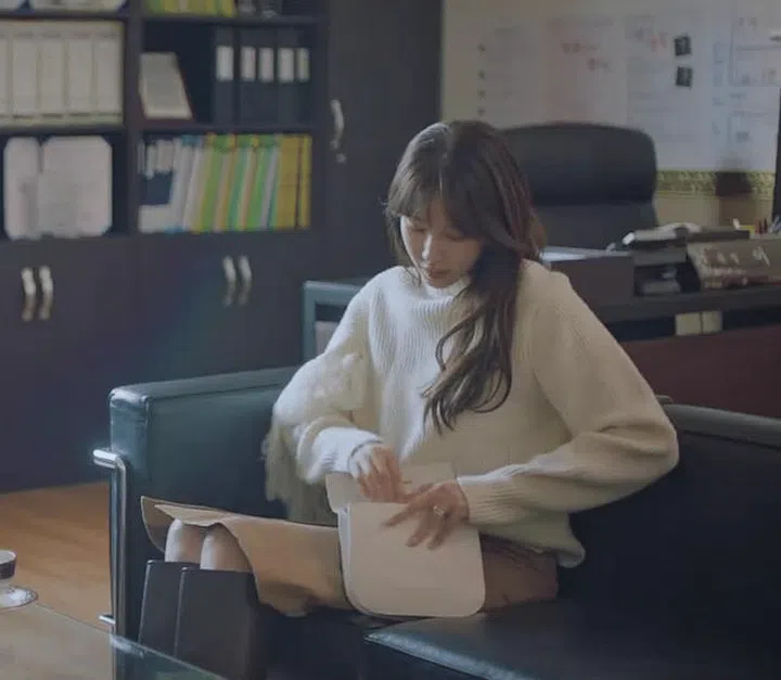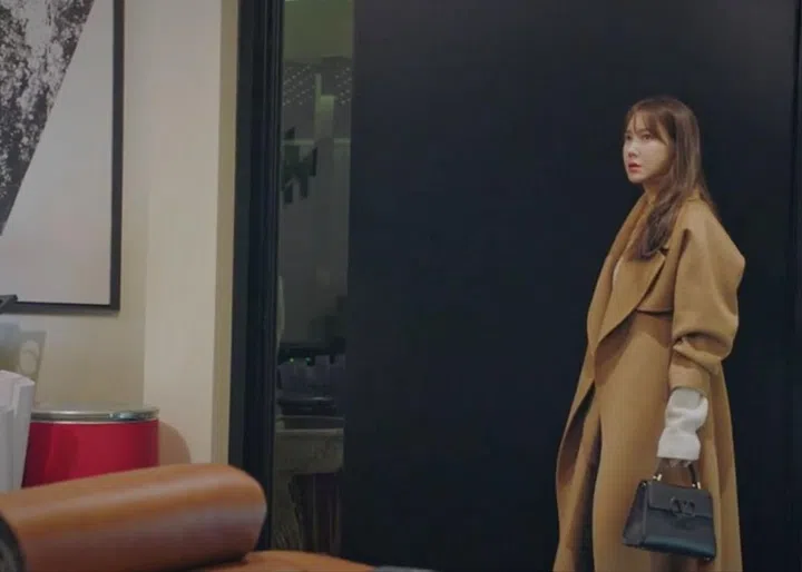 Despite being held captive by the main male character, Kim So-yeon remained sharp in her dressing. This Bau By Bride and You brown long-sleeved dress with its unique lapel neckline and chunky belt exemplified her impeccable fashion sense.