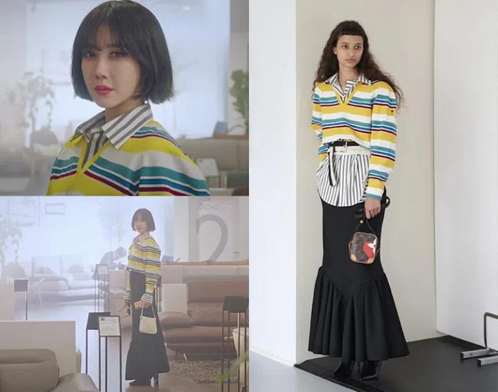 The styling of the new character Na Ae-kyo is punchier to show off her personality. One example is this Louis Vuitton Pre-Spring 2021 ensemble.
