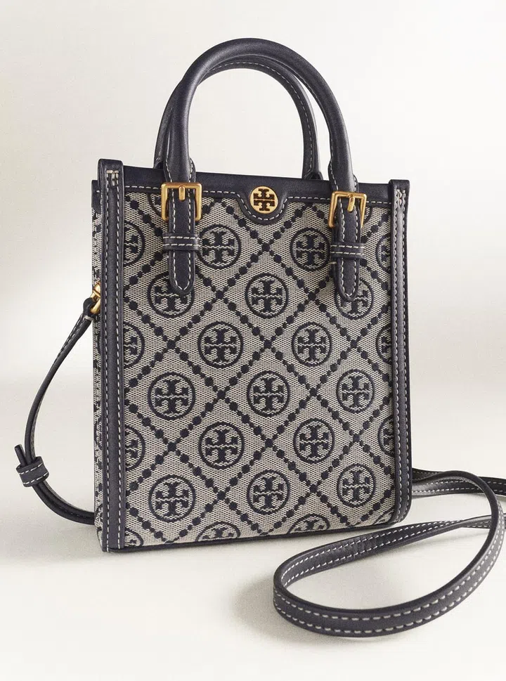 Functional and stylish at once, the Tory Burch T Monogram mini tote bag is trimmed in woven jacquard and fine leather, and paired with an adjustable, removable crossbody strap. That way, this versatile bag can be hand-carried with its top handles or worn across your body in just the perfect size to carry your daily essentials.
