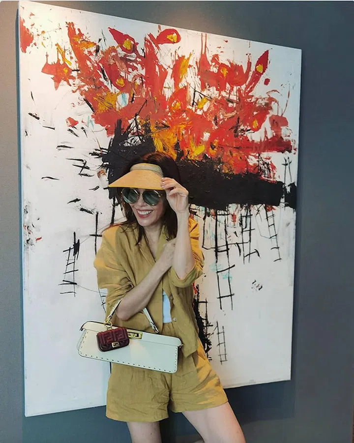 This Fendi purse has been carried multiple times by Zoe, with different styling. This look features colourful clothing and background, and her signature warm smile to encourage everyone to seize and cherish every moment during the pandemic.