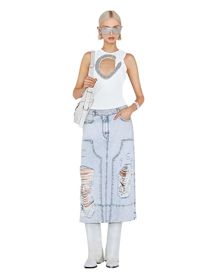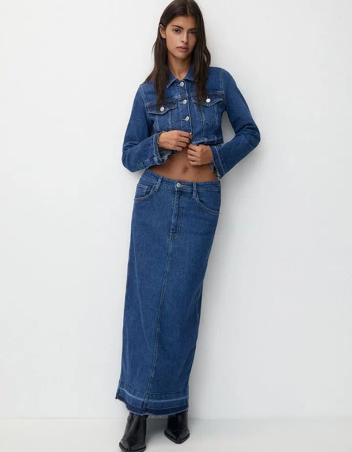 STYLE | FashionStyle these 9 denim maxi skirts like your favourite Gen-ZsFollow the lead stylish celebs like Rosalia who are already ahead of the game.By Lena Kamarudin - 7 Dec 2023Credit: Zara, Diesel, Kimhekim, Cettire, MangoShare this articleMaxi denim skirts have taken over Tiktok – look out for sexy or distressed styles with high-slits for a peekaboo effect.Credit: Instagram: @rosalia.vt1/11Our favourite Spanish singer- songwriter Rosalia ups the sexy quotient by styling her low- rise denim skirt with a peek of her thongSTYLE TIPCredit: Givenchy2/11Wear your maxi skirt with boots or oversized sweatshirts for an edgy look.Maxi denim skirt, $65.90, Pull & Bear3/11shop hereDenim maxi skirt, $175, COS at Zalora4/11shop hereDe-Pago-S Denim Skirt, $250, Diesel at CettireCredit: Cettire5/11shop hereFaded High-Waist Denim Skirt, $139, Massimo DuttiCredit: Massimo Dutti6/11shop hereLong Foil Denim Skirt, $99.90, MangoCredit: Mango 7/11shop hereZW Asymmetric Denim Skirt, $99.90, ZaraCredit: Zara8/11shop hereMarsella Rosette Maxi Skirt, $284.79, Lovers and Friends at CettireCredit: Cettire9/11shop hereLeif Low Slung Skirt, $347.60, Agolde at Revolve Credit: Revolve10/11shop hereSadie Front Zip Denim Maxi Skirt, $104, BDG at Urban OutfittersCredit: Urban Outfitters11/11shop hereTagsdenimtrendsShare this article