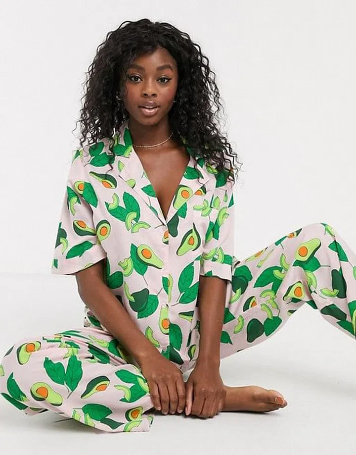 Avocados aren’t just the perfect brunch food, they make a pretty cute print too. Enjoy your brunch at home with these super cute PJs from ASOS. They come in curve options too for fuller-sized women.