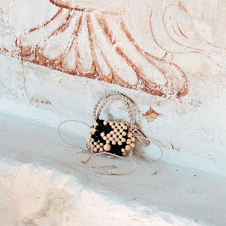 “It’s made out of wooden beads woven together with elastic, and inspired by the beaded seat covers that you sometimes see in taxis. We’ve applied the technique to whimsical objects: a coaster set, an Airpods Pro case, and even a coffee carrier.”