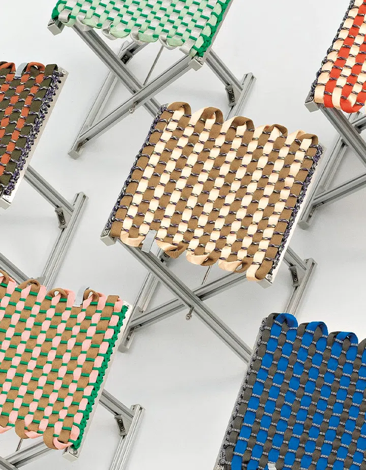 “This is a collaboration with Chengdu-based design practice Amass Studio. The ## in the name is a playful reference to the pattern in the hand-woven seat. It’s a portable stool that takes after its namesake, the mazha (马扎), a traditional Chinese folding chair.”