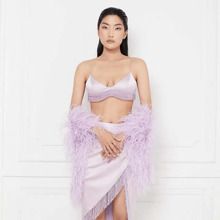 Malaysian designer Ivan Young knows what girls want: a wardrobe malfunction-free bralette that you can wear outside the house. Dripping in crystal tassels on silk, this bralette looks best with shorts and boots at your next music festival.