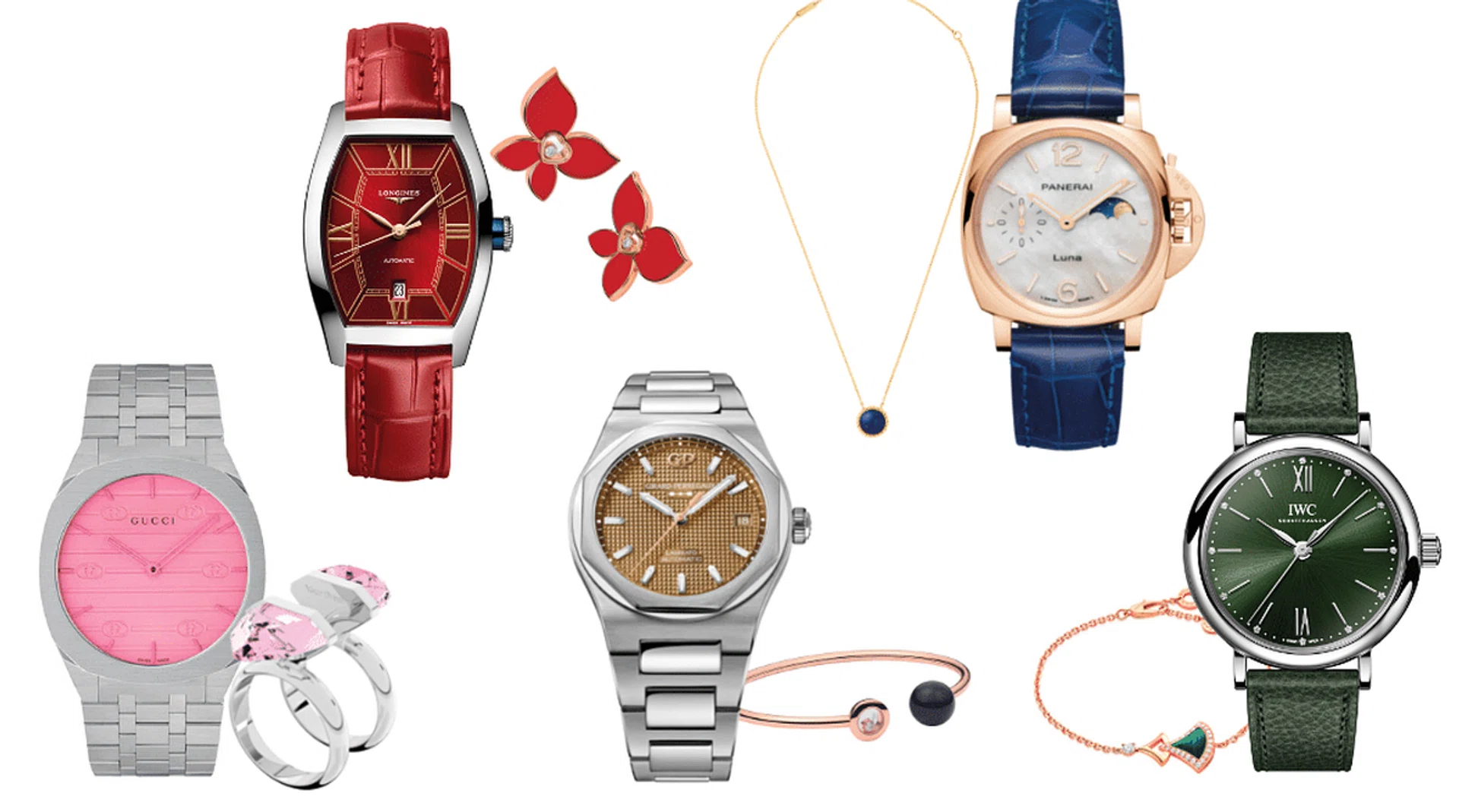 Elevate your style quotient by pairing the latest watch models with elegant jewellery in complementing hues.