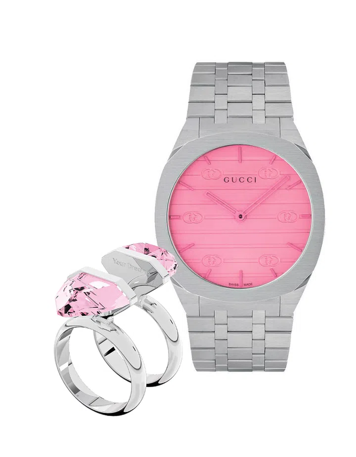 Watch: G25H steel watch, $2,490, Gucci