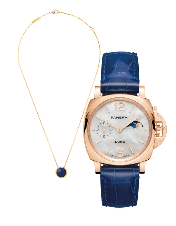 Watch: Luminor Due Luna Moon-phase Goldtech watch with mother-of-pearl, $29,200, Panerai