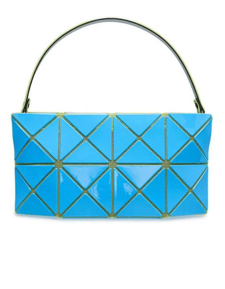 The King of Pleats is resting in power, but his impact remains. Simple and playful, this geometric purse is surprisingly easy to pair with in this neon highlighter yellow and turquoise hue.