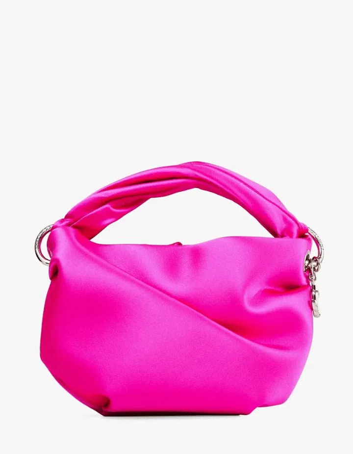 A hybrid between a party and everyday bag, this shocking pink neon satin bag is edgy, yet ladylike. Featuring a chain crossbody strap, you can wear it across your body or on your shoulders.