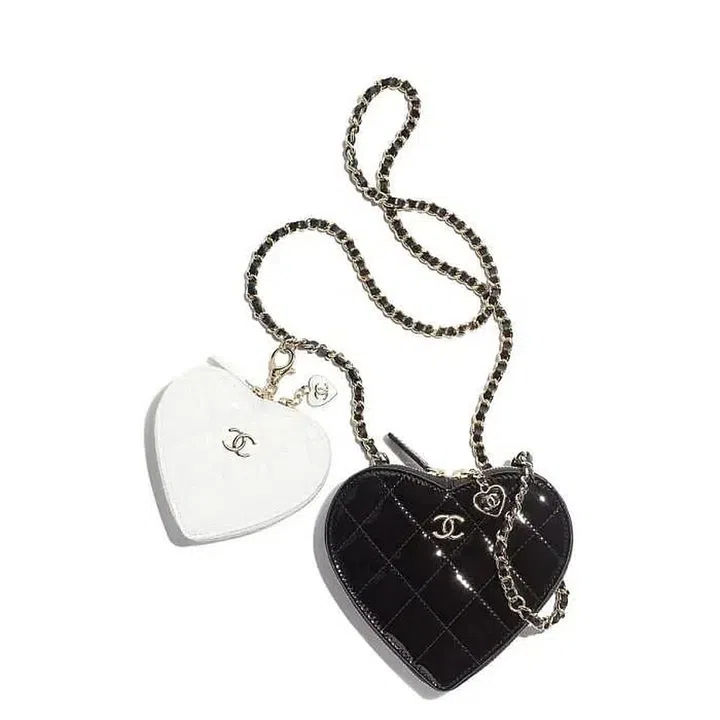 Why have one when you can have two? The black heart-shaped clutch comes with a lovely pairing of a smaller white compartment – both having a heart-shaped zipper to really drive the heart theme home.