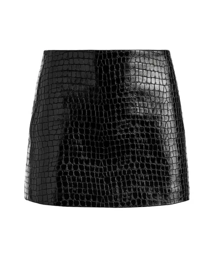 Embossed vegan leather mini skirt, $134.63, Alice & Olivia