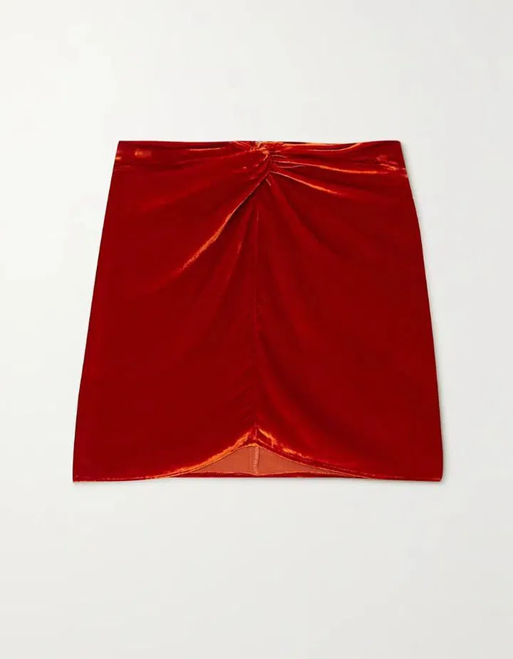 Ruched velvet mini skirt, $99, Reformation at Net-a-porter.com