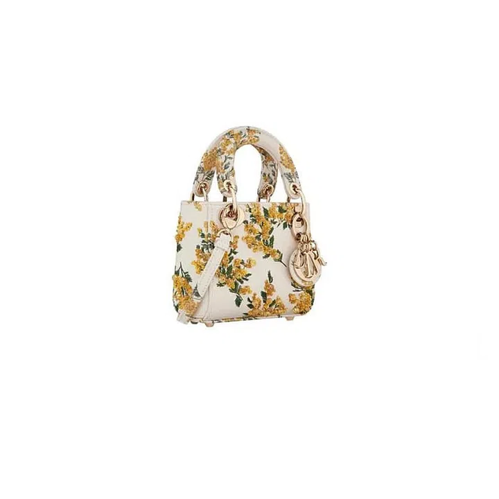 An icon of the maison, the Lady Dior (named after the late Princess Diana who was gifted the bag by former First Lady of France Bernadette Chirac in 1995) has made an appearance in just about every collection Maria Grazia Chiuri has put out. This season, the petite version comes with a clever twist: the material which looks like jacquard is actually leather that features both the print and embroidery of Dior’s D-Flower Mimosa motif.