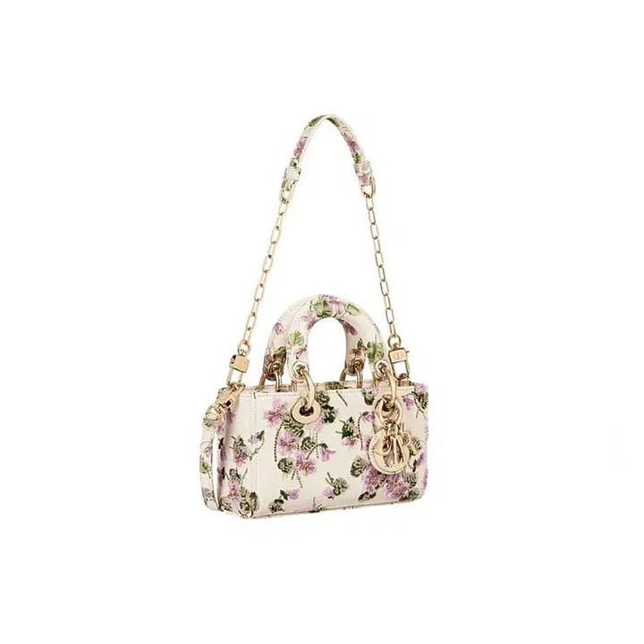 In essence, the Lady D-Joy bag is the leaner and east-west version of the Lady Dior. This pretty version comes printed and embroidered with the D-Flower Violette motif.