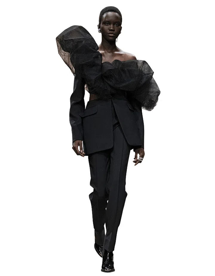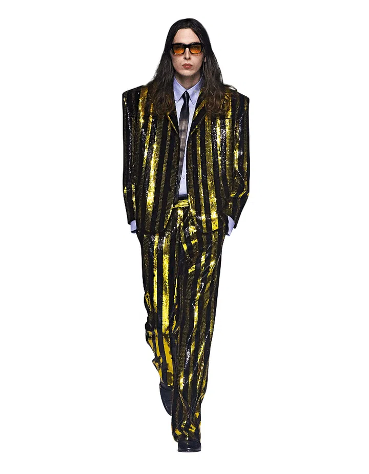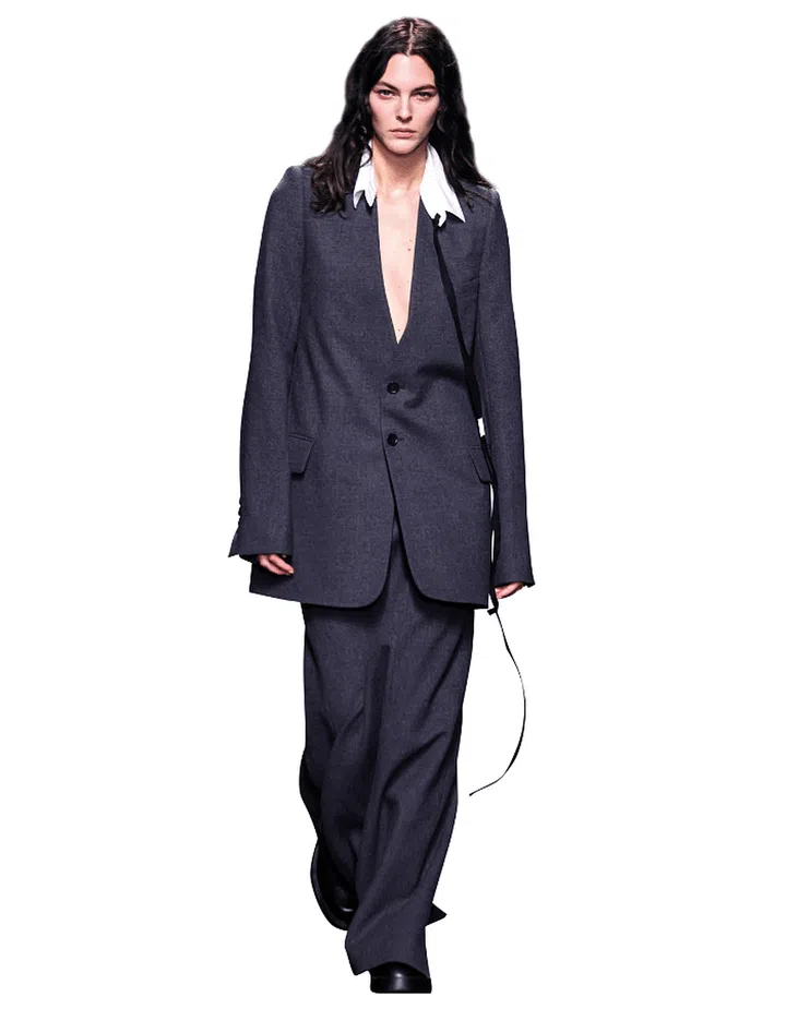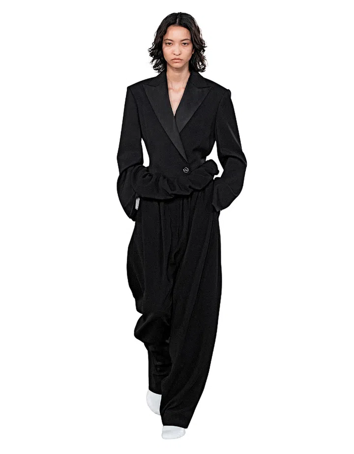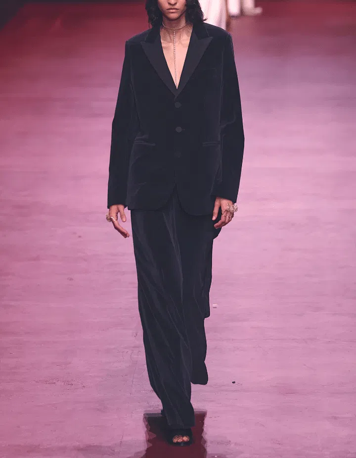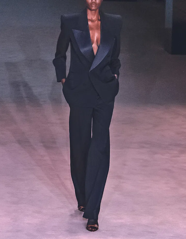 “I love Saint Laurent’s take. The definition and structure in the shoulders contrasts so well with the slim silhouette of the trousers.”