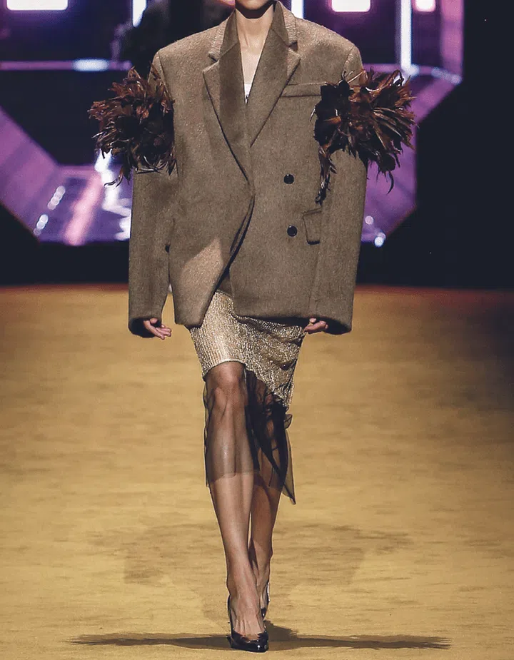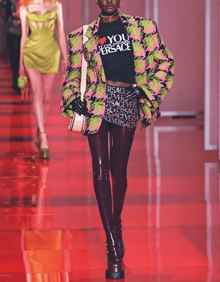 “Versace’s short skirt suit with the oversized blazer and padded shoulders is something I can see myself in as it’s youthful yet fun.”