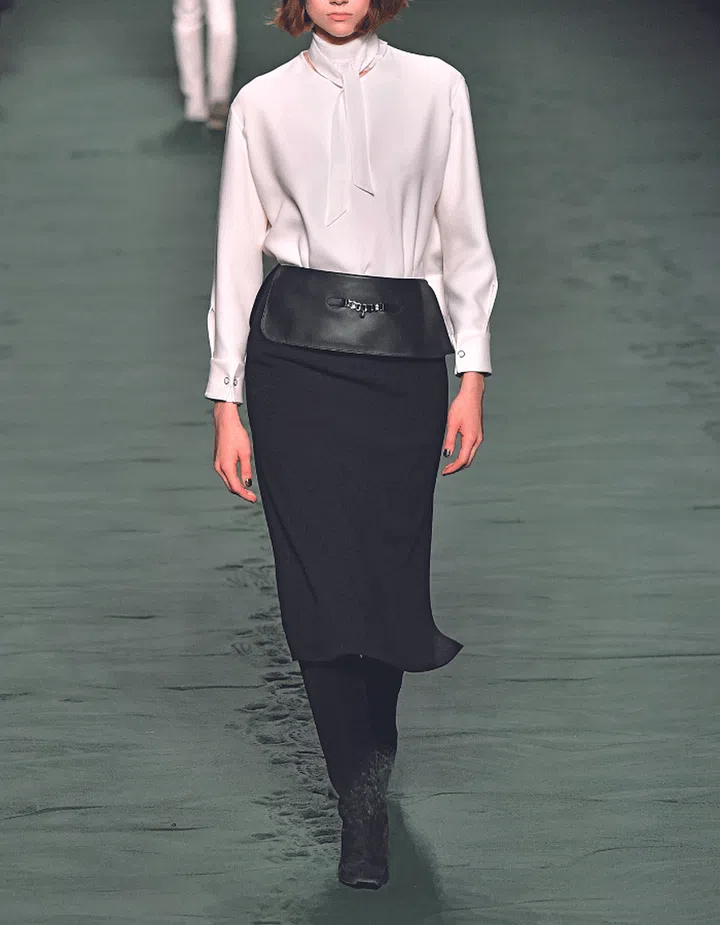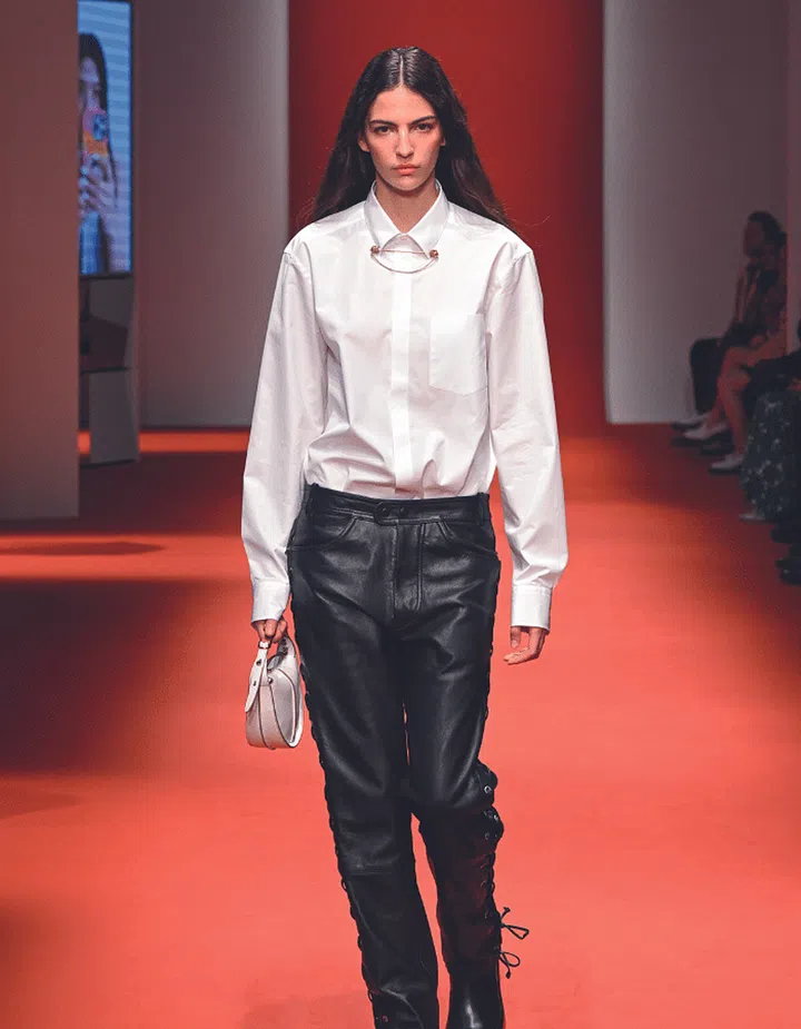 Walk the talk of a power woman in sleek leather styles at Hermes and Alaia, or with quirky details at Bottega Veneta and Loewe.