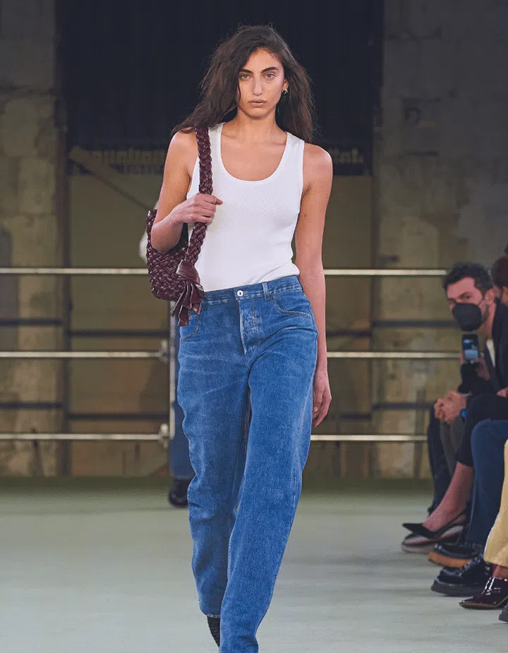 “I love how the bag adds a pop of colour to a classic tank top and jeans combo at Bottega Veneta.”
