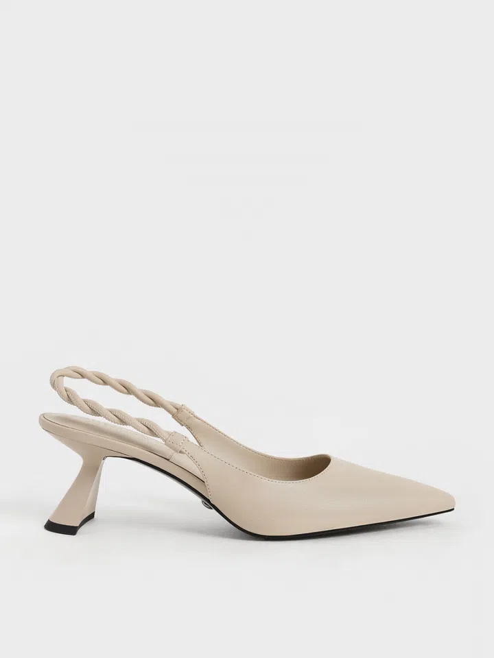 Nude heels should be a staple in your wardrobe, especially when it comes with a slightly sculptural heel design and braided slingbacks.