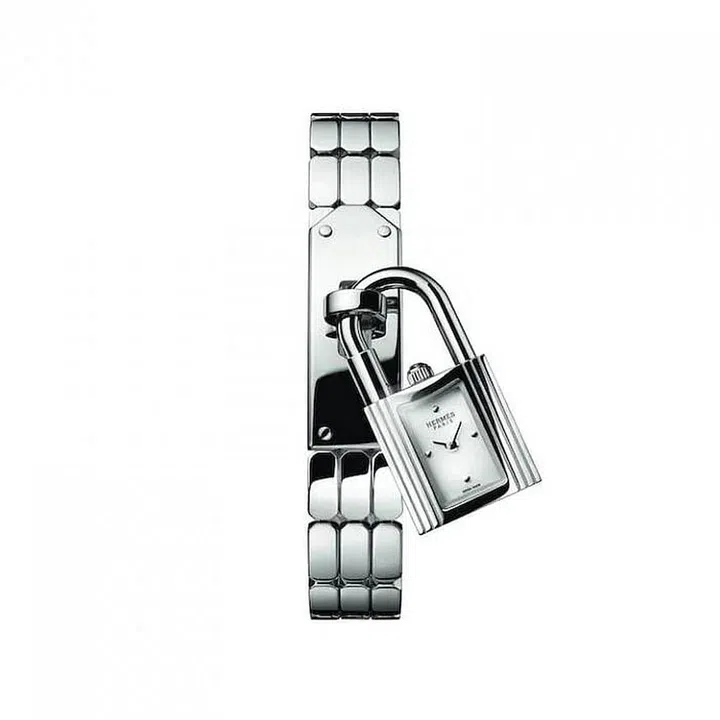 Renamed in the 1950s thanks to its number one fan, Grace Kelly, the Hermes Kelly remains one of the most sought after bags today. Now you can also carry one of its most delightful features — the padlock-shaped clasp — in the form of a watch. Inside this steel padlock is a white lacquer dial that runs on a Swiss-made quartz movement.