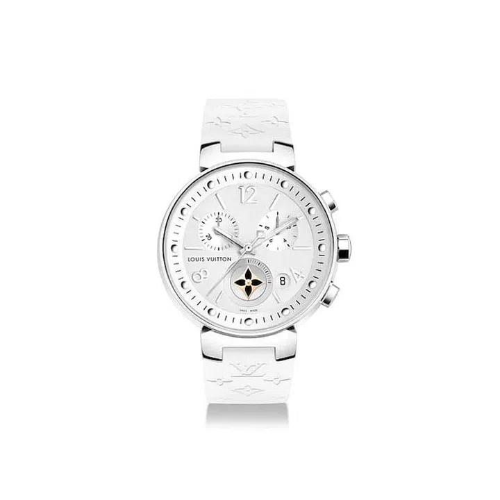 A crisp, white colourway adds feminine flair to this typically masculine complication. The 35mm stainless steel case features a glossy white dial set with 12 polished cabochons on the flange, a playful golden Star Monogram flower acting as the small seconds disc at 6 o’clock, and a small date aperture at 5 o’clock. Comes with an interchangeable rubber strap, and is water resistant to 50m.