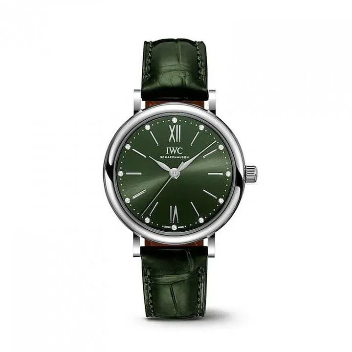 It makes sense for IWC’s smallest watches to come from the simple and chic Portofino collection. With slender lugs, narrow indexes and slim case profile of just 8.6mm, the Portofino Automatic 34 is minimalism at its finest. But a wash of the trendiest colour this season (with a matching alligator strap by Santoni) ensures it is still a visually arresting statement on the wrist.