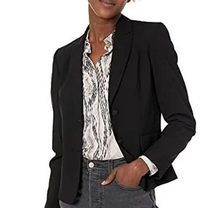 Customer review: “If you are searching for a classic black blazer look no further. The material is luxurious, classic and the fit is right on; relaxed and classic without being overwhelming. For reference I am 5’5″, 130 lbs., and purchased the size small. Could have gone down to the XS but I feel that it would lose that loose, relaxed look and feel. So happy with my blazer, I only regret not buying it sooner.”
