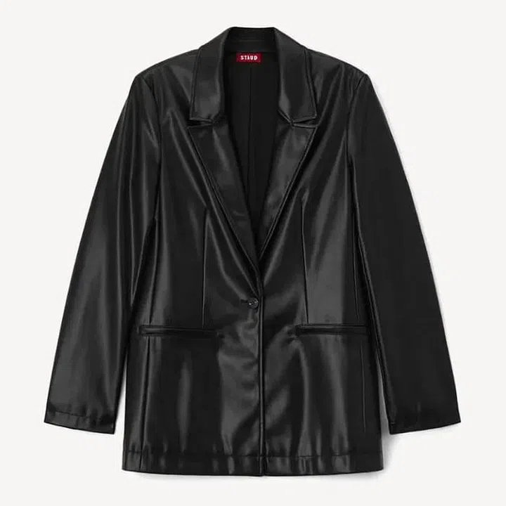 This is the best leather blazer I currently own and the best made from a leather alternative. I love it for the panelled, longline shape and front pockets. Between the shape and the storage, I often use it as a light jacket. The designer behind it, Sarah Staudinger, previously told me that it’s “an easy and versatile piece to layer over anything.” My favourite way to style this blazer? Over a white crewneck T-shirt and a black sweater vest with baggy jeans—it’s very ’90s New York.