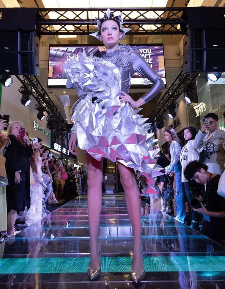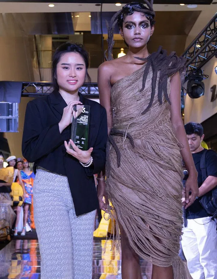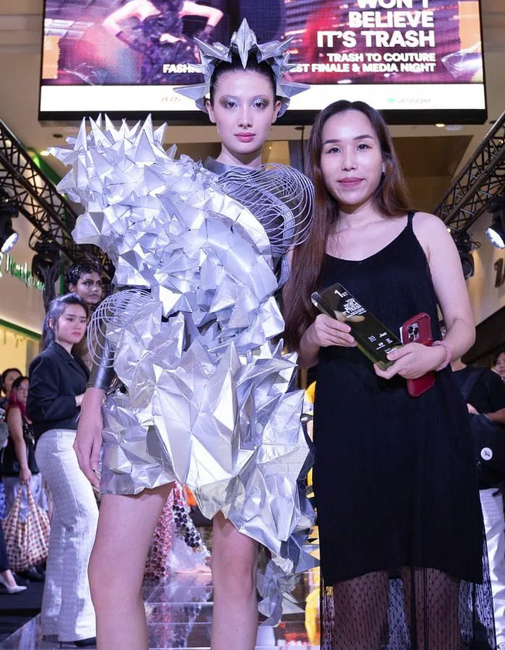 In the end, 10 finalists were selected to showcase their creations on the runway with the help of professional models. They were joined by Thailand’s innovative upcycled fashion designer Apichet Atirattana, better known as Madaew, who presented five of her own trash-to-couture designs at the fashion show at 313@somerset.