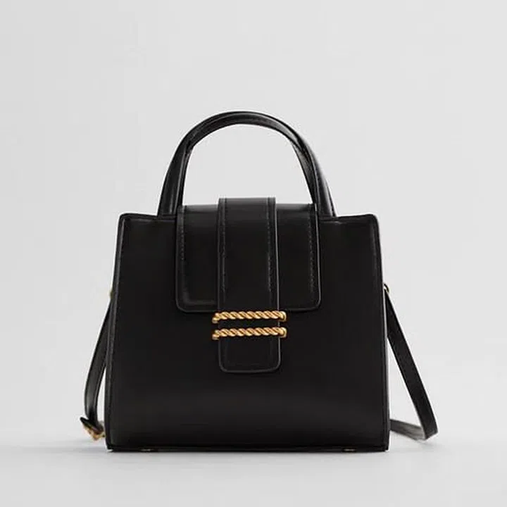For those who’d fancy something a little more sleek and professional, this structured boxy bag might just be the perfect option for you. With a simple and understated design that’s elevated with a double golden twisted cord design on the flap closure, this mini top handle purse will team well with almost any outfit you’ve got on.