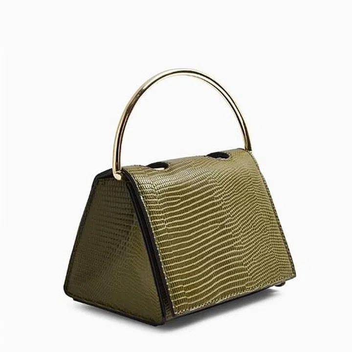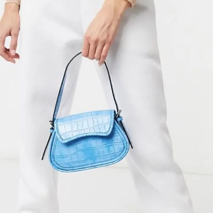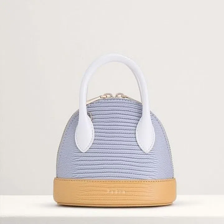 A modern design with a retro twist, this bag from Pedro features a curved egg-like silhouette that’s complemented by stiff circular top handles. Sporting a charming colour palette of pastel blue, mustard yellow and white, this petite bag ups the ante further with its lizard-effect finish. Bonus: it comes with a detachable chain strap too so you can sling it across your body to complement outfits that are more casual.