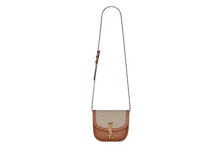 Saint Laurent by Anthony Vaccarello Kaia small leather and canvas shoulder bag, $2,260, Saint Laurent