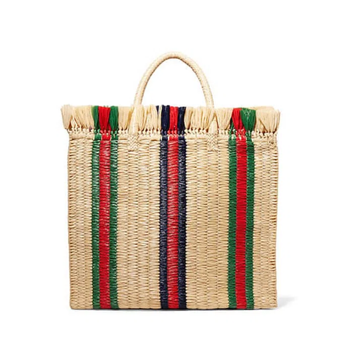 Made from raffia, Gucci's sizable 'Linea Cestino' tote has the label's signature tricolor stripes and a frayed, open top for a natural raw finish. Roomy and stylish, this will help you lug all your vacation essentials with ease.