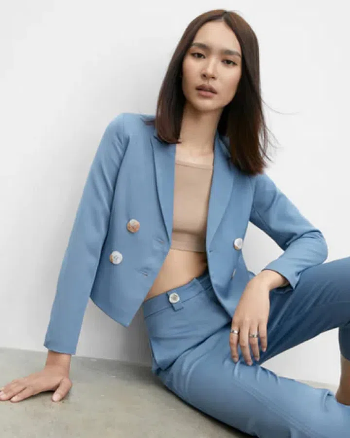 Wear to the office: Pomelo Square Button Double Breasted Blazer - Blue, $54.90