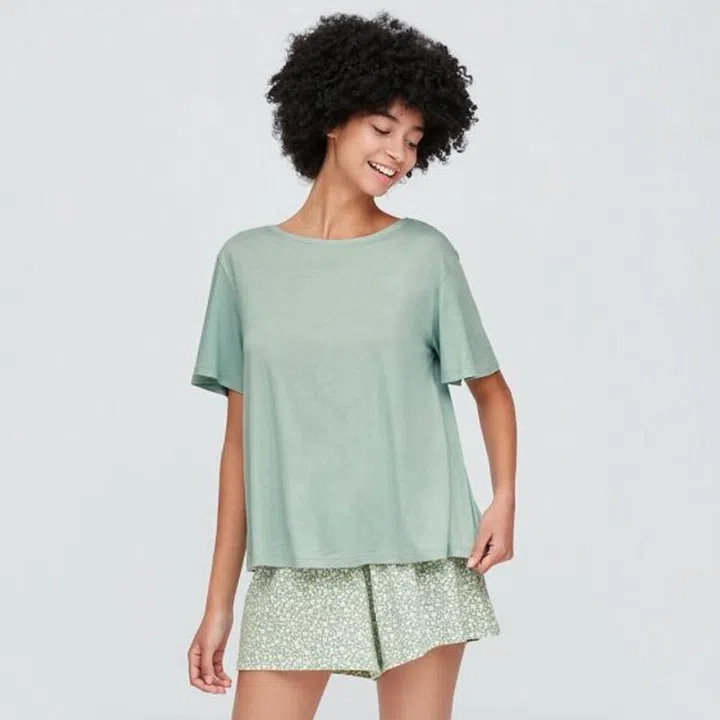 Work form home in: Uniqlo Joy Of Print Short Sleeve Set, $14.90