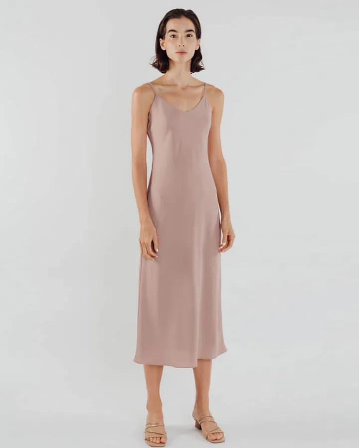 Work from home in: Klarra V Neck Slip Dress in Muted Rose, $79