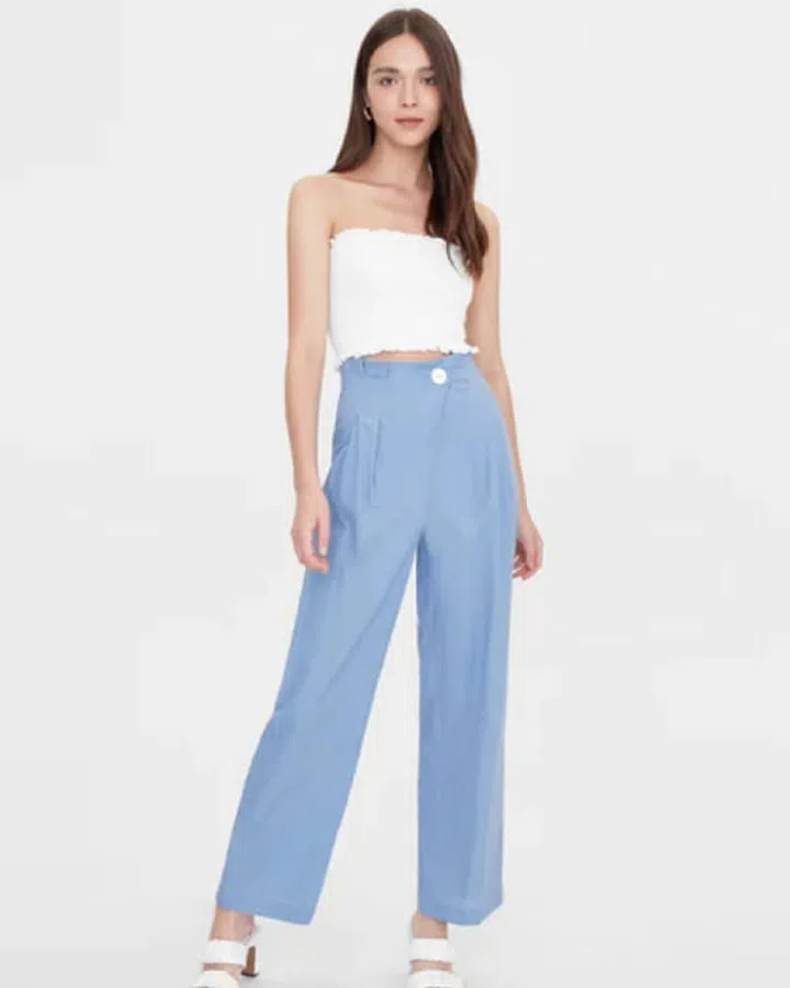Work from home in: Pomelo One Button Wrap Wide Leg Pants - Blue, $54
